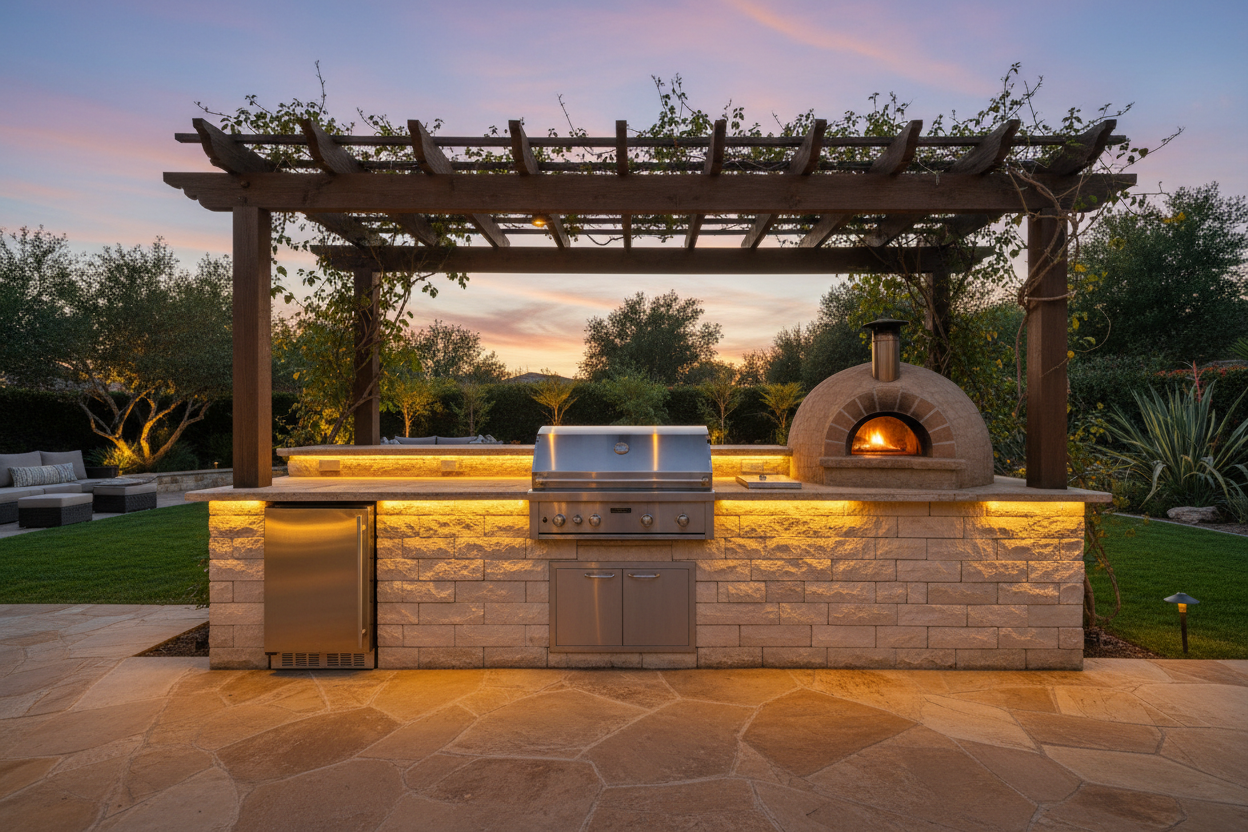 A permanent foundation for open‑air living, shaped for homeowners who value craftsmanship, space, and the comfort of cooking in a place designed for gathering.